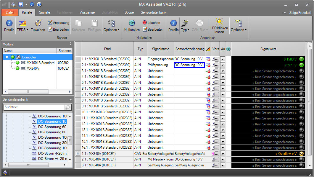 Es wird der MX-Assistent V4.2 R1 (216) verwendet, der mit QuantumX-Geräten mit Firmware ab Version 4 arbeiten kann.