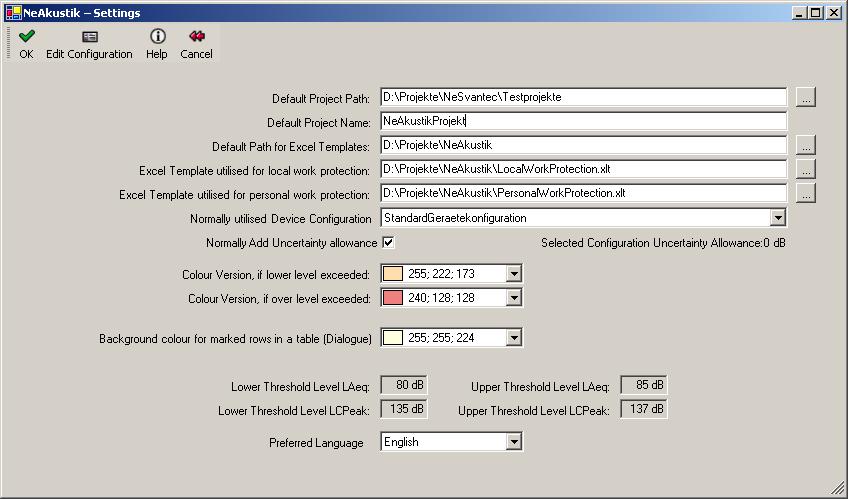The lower and over threshold levels for LAeq according to EU Directive 2003/10/EC. These values cannot be changed using the program interface. |