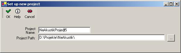 After clicking 'OK' a directory will be created, such as in the above case"D:\Projekte\NeAkustik\NeAkustiProject5", in which later all the files that belong to the project will be placed.
