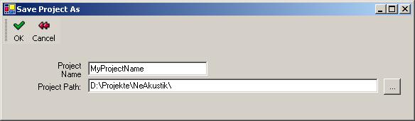 Please note that in the given example under the path "D:\Projekte\NeAkustik" a directory is created named "MyProjectName" in which all project files of the project of the same name will be saved.