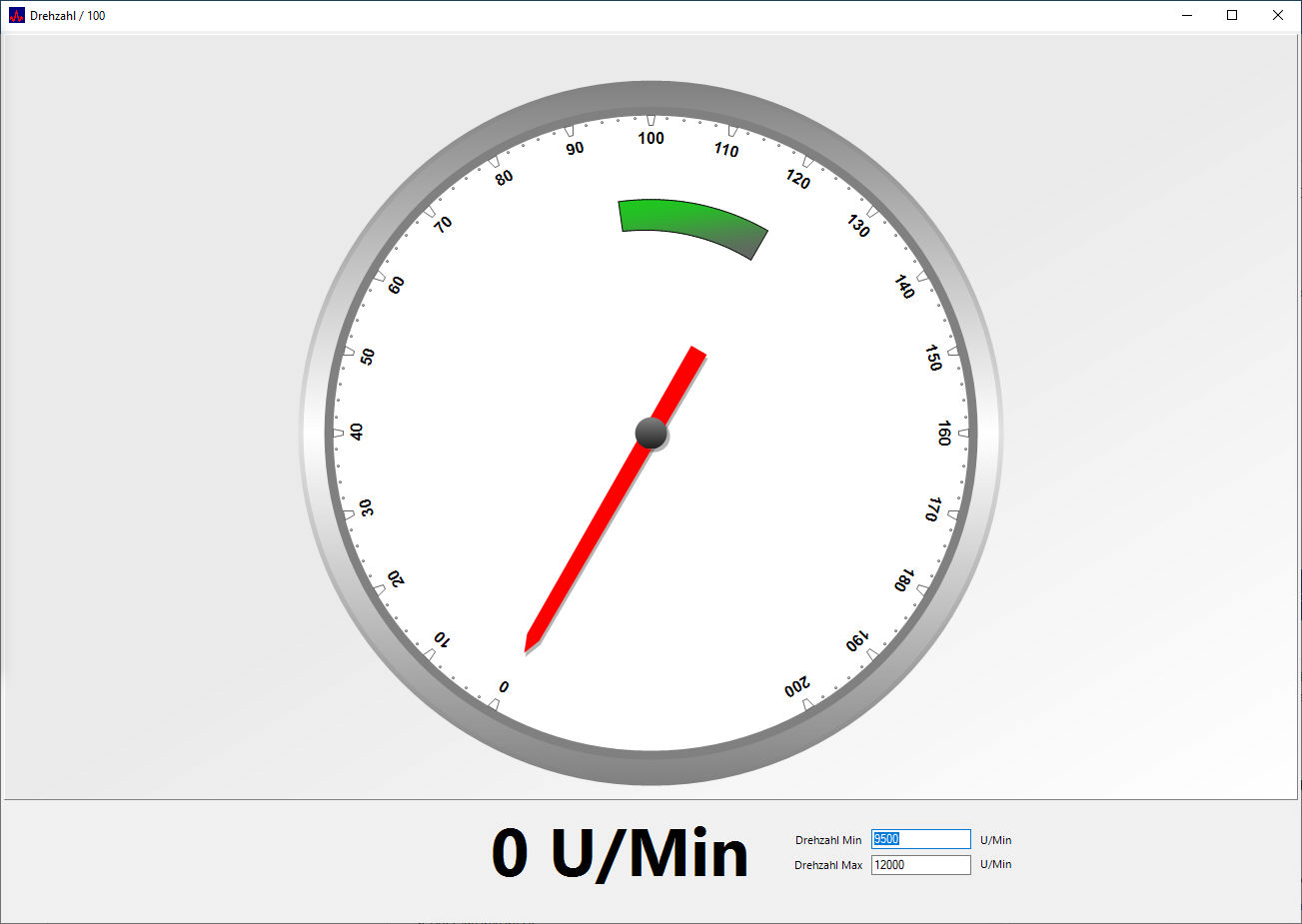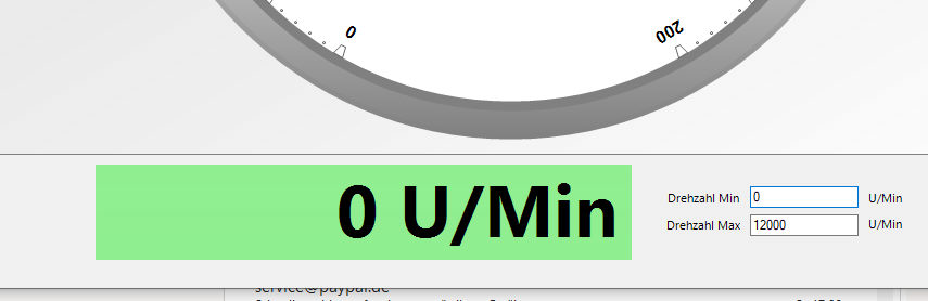 Wenn die Drehzahl zwischen dem angegebenen Minimum und dem angegebenen Maximum liegt, wird derHintergrund der Zahl-Anzeige auf grün geschaltet :