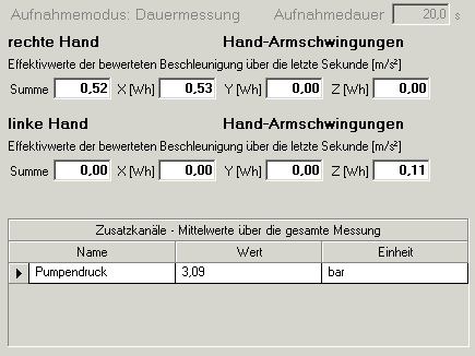 Nach der Messung werden die Mittelwerte über die gesamte Messung angezeigt.