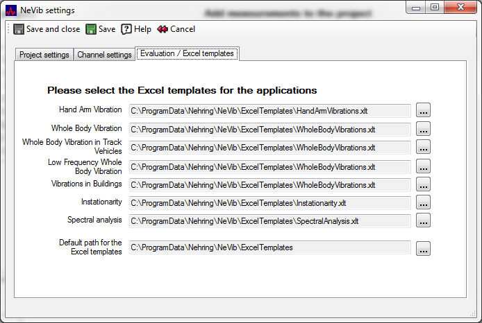 For each type of evaluation you may select an Excel template. The selected template will be saved and will be used for further evaluations. |