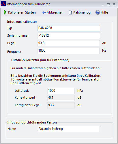Einige davon dienen nur zur Dokumentation. Die Pegelangaben werden zur Kalibrierung benötigt.
